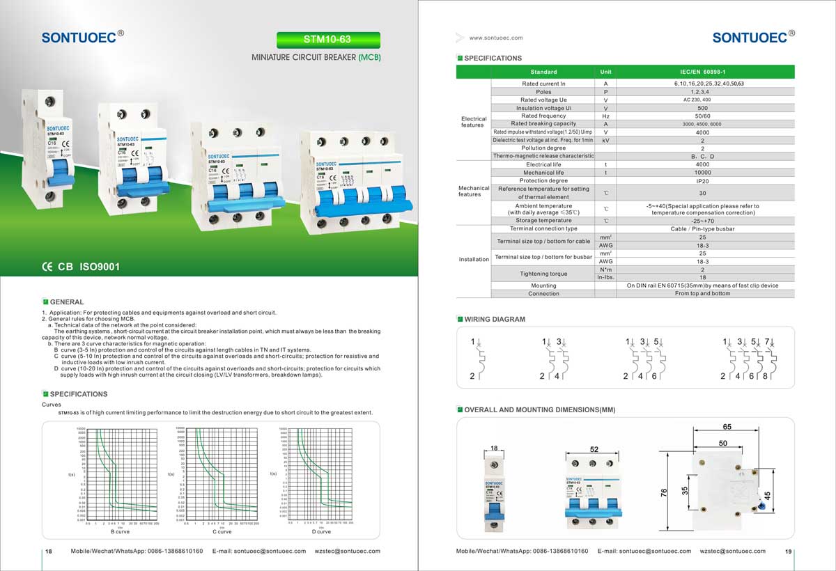 SONTUOEC არის ერთ-ერთი ჩინელი მიმწოდებელი/მწარმოებელი, რომელიც სპეციალიზირებულია სხვადასხვა მცირე ელექტრო ტექნიკის წარმოებაში STM10-63 სერიის მაღალი მტვრევადი მინიატურული ამომრთველის მახასიათებლები: მოწინავე სტრუქტურა, საიმედო შესრულება, მაღალი გამანადგურებელი სიმძლავრე, ელეგანტური გარეგნობა და მისი გარსი და ნაწილები დამზადებულია ზემოქმედების წინააღმდეგობის მქონე მასალისგან, ძლიერი ცეცხლგამძლე თვისებით. შესაფერისია 50 ან 60 სიხშირის, Ue 400V და ქვემოთ, Ui 63A და ქვემოთ ენერგოსისტემებისთვის. იგი შეესაბამება IEC60898.1 და GB10963.1 სტანდარტებს.
